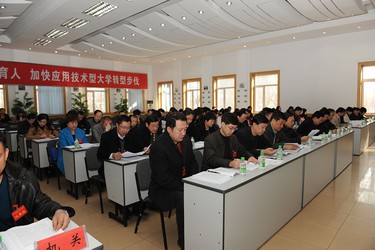 徐克明校长在报告中回顾了2015年的工作。2015年,学校围绕转型发展目标任务,大力加强教学基本建设,扎实推进产教融合、校企合作,努力提高应用技术型人才培养质量,持续提升科研能力和社会服务水平,顺利完成了各项工作任务。学校学科专业布局持续优化,教育教学质量稳步提高,学生德育特色逐步形成,科研工作成绩显著,教师队伍素质持续提升,开放办学稳步拓展,社会服务能力持续提高,内部管理改革规范有序,和谐校园建设有序推进,党建和思想政治工作不断加强。