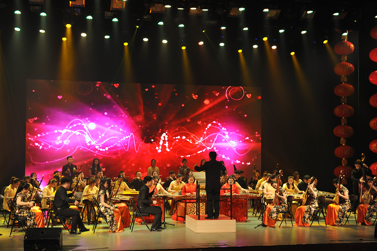 表现和美团圆、欢乐祥和,极具东方元素的民乐合奏《花好月圆》《金蛇狂舞》把音乐会推向高潮。在激情振奋的歌曲《祖国万岁》《再筑时代铁脊梁》后,音乐会在舞蹈《翻身农奴把歌唱》中落下帷幕。
