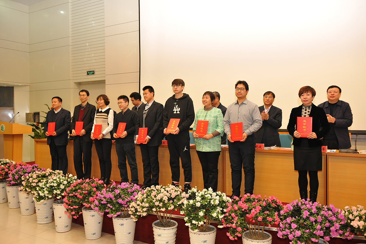 接着,校领导为32位在教学和科研方面做出突出成绩的教师进行颁奖。