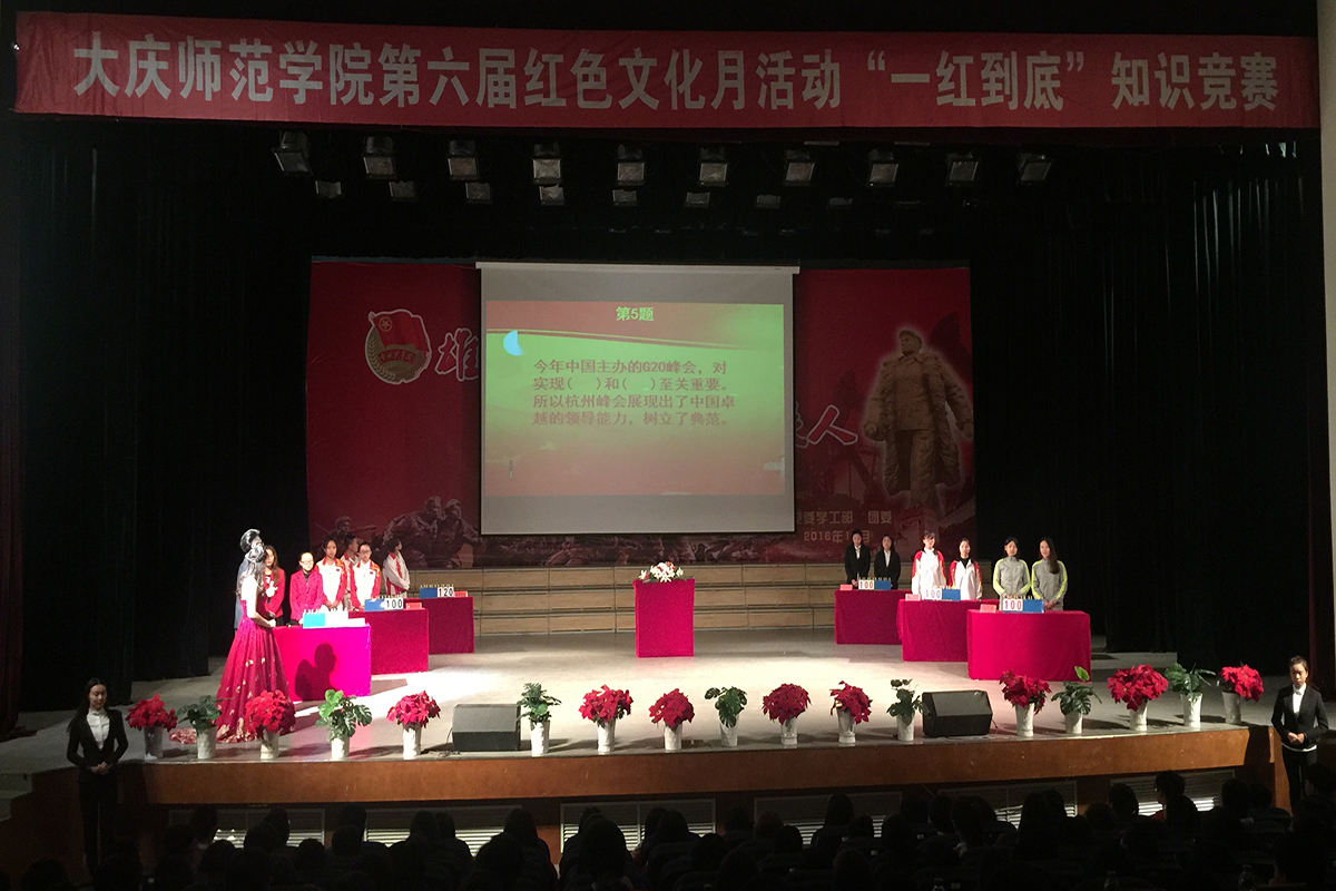 扬大庆精神铁人精神旗帜,展庆师莘莘学子青春风采。由党委学生工作部主办,生物工程学院、化学工程学院承办的第六届红色文化月活动之“一红到底”知识竞赛于10月26日下午在大学生活动中心拉开帷幕。