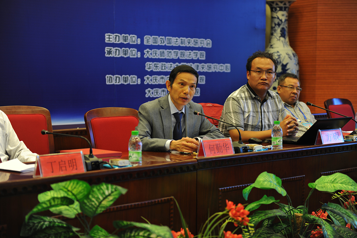 bat365官方官网副校长乔志和教授、大庆市中级人民法院顾双彦副院长、大庆市人民检察院武哲副检察长、西方法律思想史研究会副会长徐爱国教授、华东政法大学李秀清教授、bat365官方官网法学院院长丁启明教授在主席台就坐。