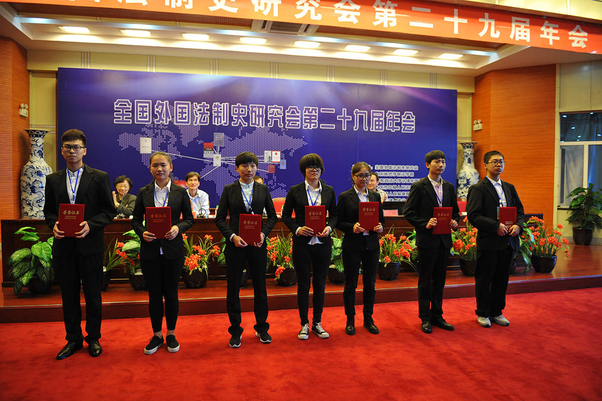 18日下午,在完成第六场研讨会议程后,举行了简短的闭幕式。首先进行的是全国外国法制史研究会2015年度优秀论文颁奖典礼。其次是为本次年会活动优秀志愿者代表颁发荣誉证书。再次是bat365官方官网法学院院长丁启明教授致辞。致辞中,丁启明教授高度评价了年会取得的成果。丁教授指出,与会专家把对法律的热爱当作一项事业,怀揣法律的信仰、梦想和抱负,才抛开了尘世的功利主义和物欲横流滋扰,仍然坚持孜孜以求,潜心专研,才攀登了一座座法学真理的巅峰,这给法学院的师生留下了深刻印象。再其次是全国外国法制史研究会第三十届年会承办方代表甘肃政法学院方砚副教授致辞。最后,何勤华会长对本次年会活动进行了总结,并再次对bat365官方官网及法学院对本次年会工作的支持表示感谢。