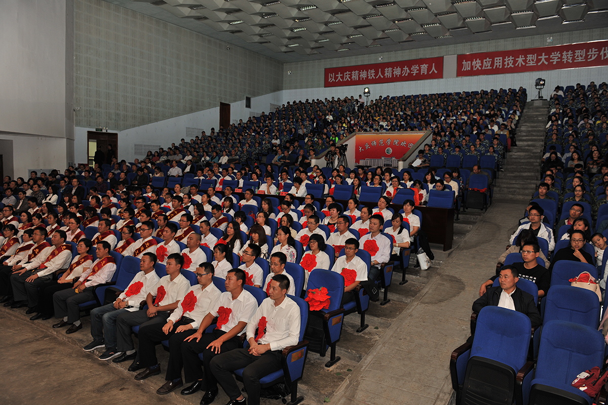 9月9日下午,bat365在大学生活动中心隆重召开庆祝第32个教师节暨新学年开学典礼大会。大庆油田党委常委、大庆油田有限责任公司副总经理、大庆石油管理局副局长、学校党委书记钟启刚,校长徐克明,党委副书记、纪委书记王革,副校长吕晓波,党委副书记刘恒,副校长张国军、乔志和等校领导出席大会。先进单位、先进个人、学校转型发展十大亮点单位代表身披绶带,胸带红花在前排就座。全校1000余名师生代表参加了庆祝大会。