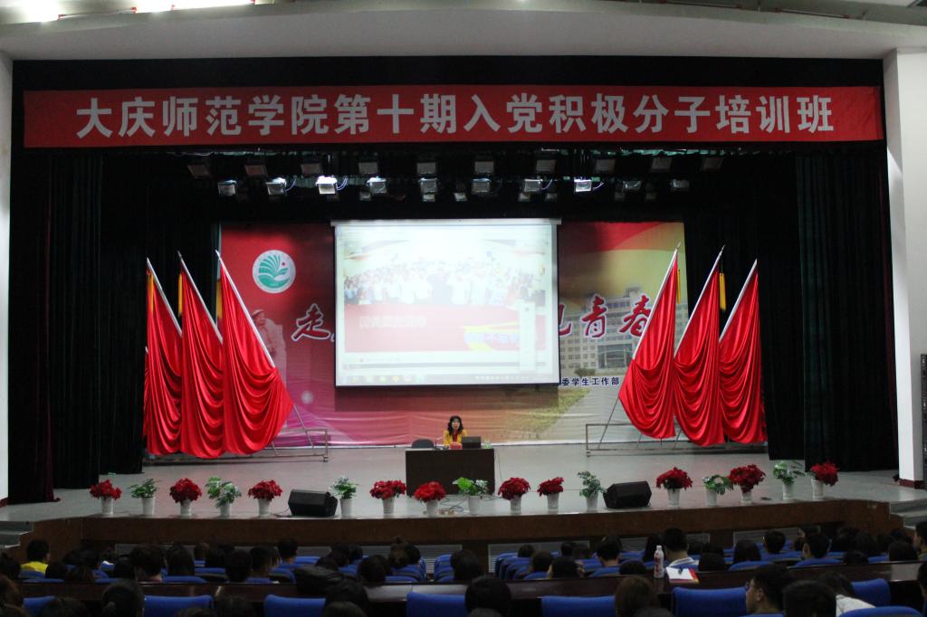 在集中授课中,郭元阳老师为学员们重点讲述新民主主义革命时期中国共产党的建立以及在中国共产党领导下进行的土地革命、抗日战争和解放战争的艰苦卓绝的历程,使学员们了解党史、热爱党史,认识到学习党史的必要性和经常性;付晓东老师以《筑梦路上你我同行》为题,为同学们生动阐释了中国共产党的性质、根本宗旨和指导思想,同时列举大量学生身边的例子鼓励积极分子们勇当实现中国梦的急先锋;思政部赵桂英书记和刘晓华老师分别通过对“四信”和大庆精神铁人精神的讲解,将党的理论与实际相结合,将大庆精神与大学生现实生活相结合,使学员增强对共产主义的信仰和对党的热爱;文学院学生党支部书记楚丽丽和组织部刘彰基老师还为学员做了端正入党动机和入党程序为主要内容的讲座。课上全体学员还观看了纪录片《信仰》。各学院学生党支部在课后组织参加培训的学员进行座谈。9月4日上午,党校组织开展闭卷考核测试,512名入党积极分子通过考核,合格率为76%。