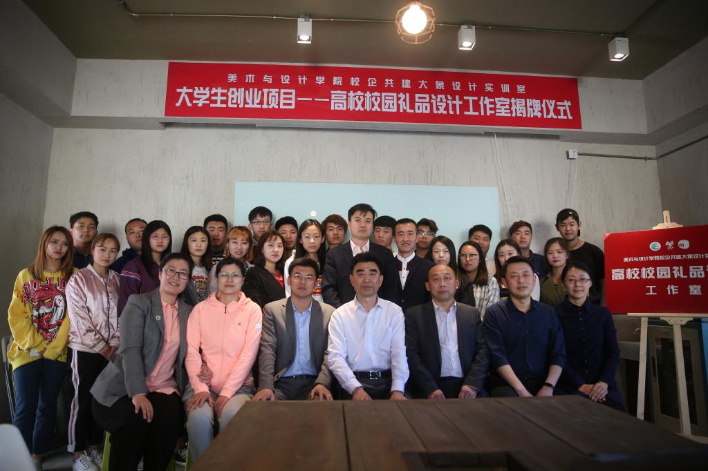 2017年5月8日下午,由美术与设计学院主办,学校大学生创业产业园大象设计实训室承办的“大学生创业项目——高校校园礼品设计工作室”揭牌仪式在大学生创业园举行。学校党委副书记刘恒、团委副书记张雷、大学生就业指导中心主任燕明辉、大学生资助中心副主任葛静、美术与设计学院师生30余人参加此活动。