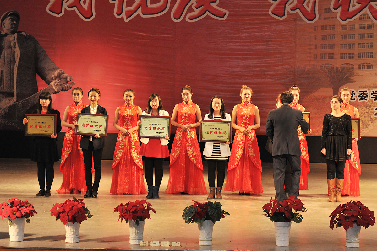 颁奖典礼上,阅读经典导师和学生为读书月活动中荣获“十佳读书之星”、“十佳书香寝室”、“十佳书香班级”、“优秀组织奖”和“我最喜爱的老师”等奖项的获奖单位和个人颁奖。