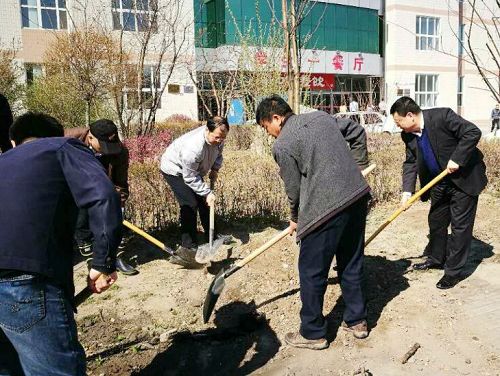 后勤党总支紧紧围绕“强党性固信念,为学校转型发展做贡献”主题,开展了一系列的实践活动。4月21日下午,后勤党总支组织了20余名党员群众,来到学生一食堂楼门前进行义务植树。副校长张国军同志也与大家一起参加了劳动。