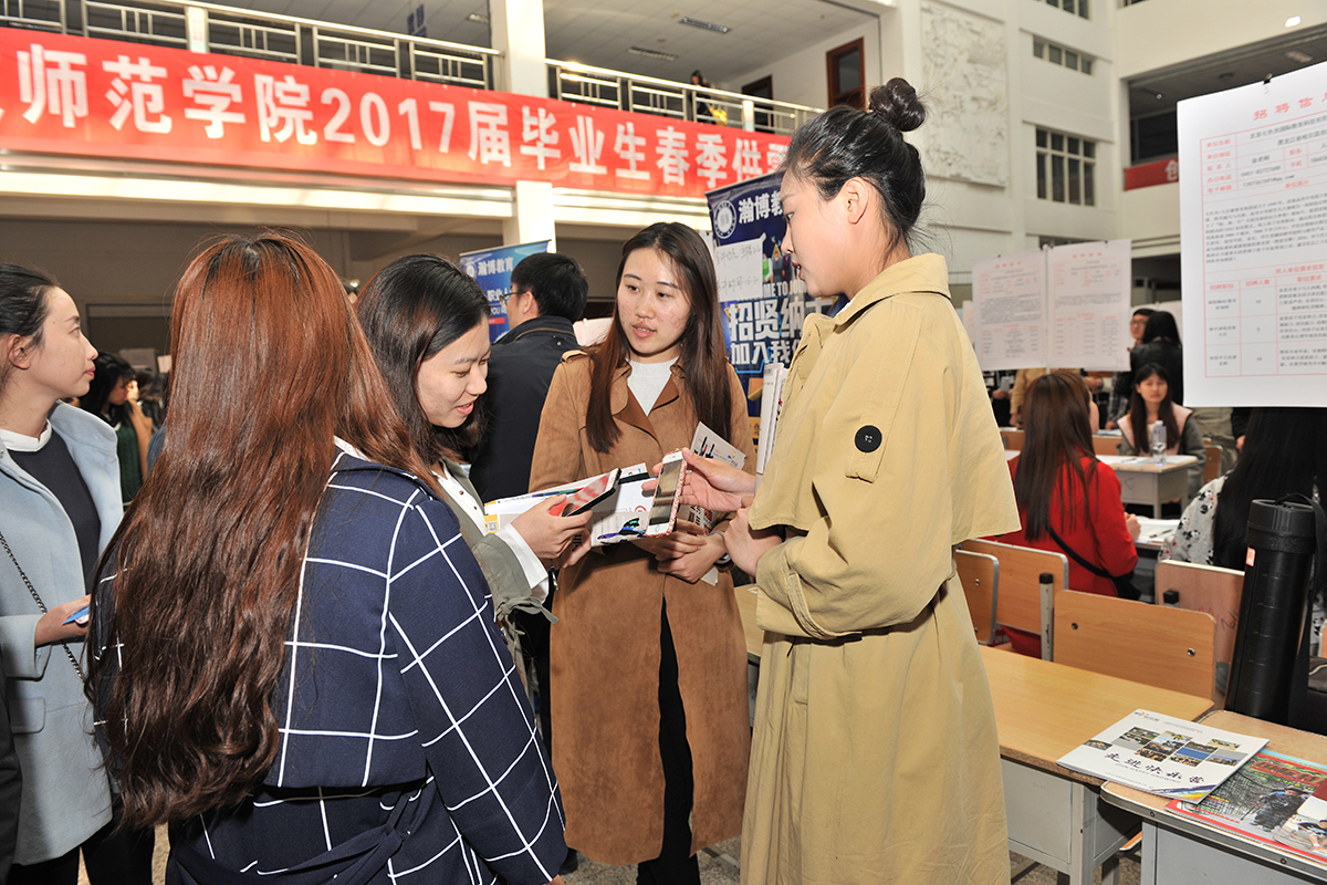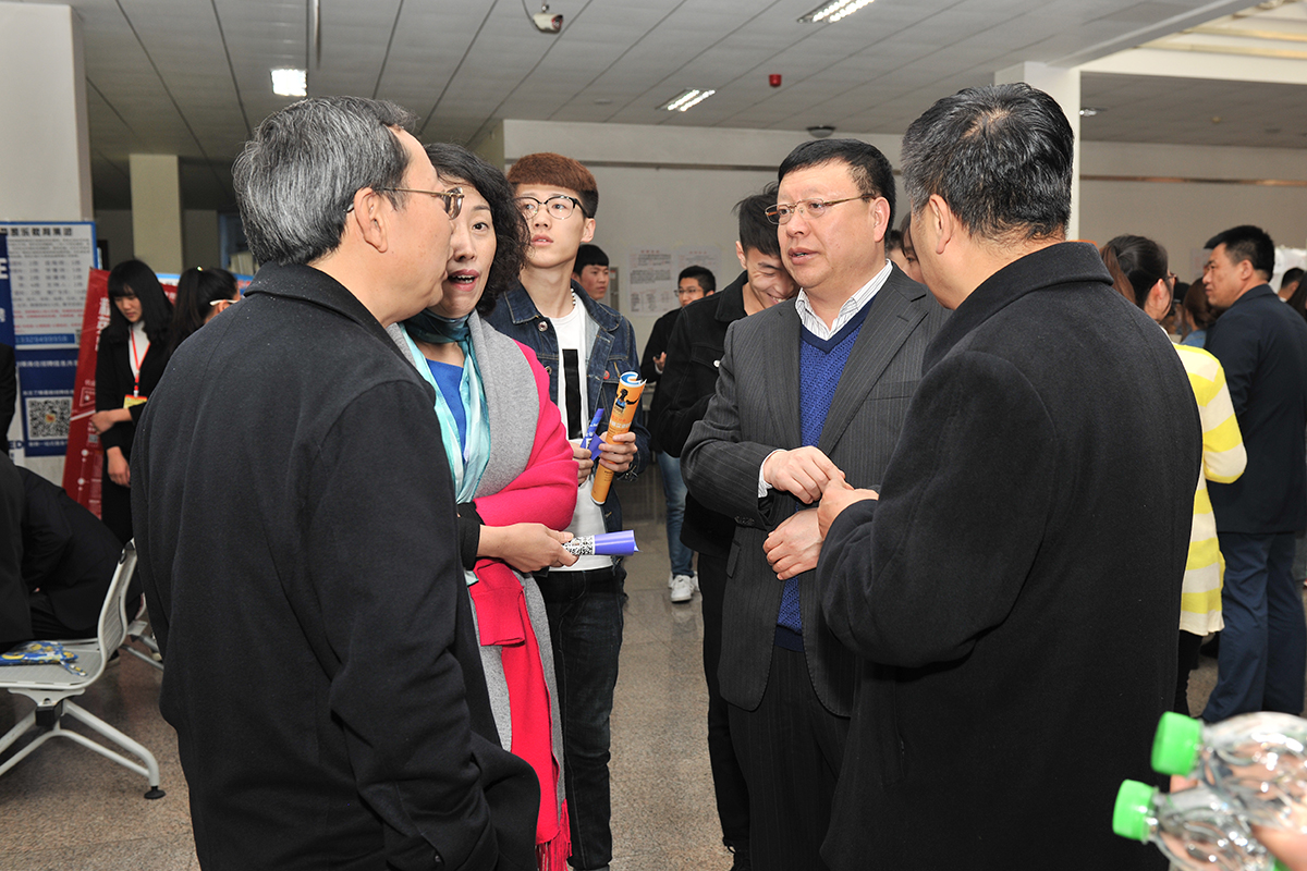 2017年4月19日,2017届毕业生春季大型供需洽谈会在bat365图书馆举行。学校主管领导亲临现场,部分学院书记、院长、教研室主任主动与用人单位沟通,了解企业用工需求,为毕业生现场指导。