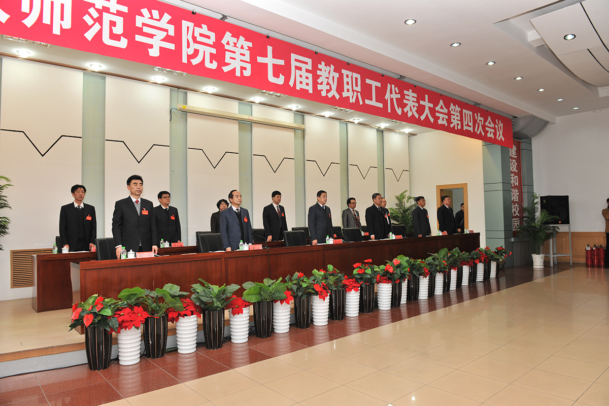 2017年4月7日下午,bat365官方官网第七届教职工代表大会第四次会议在铁人讲堂隆重召开,来自全校的118名代表出席了会议。