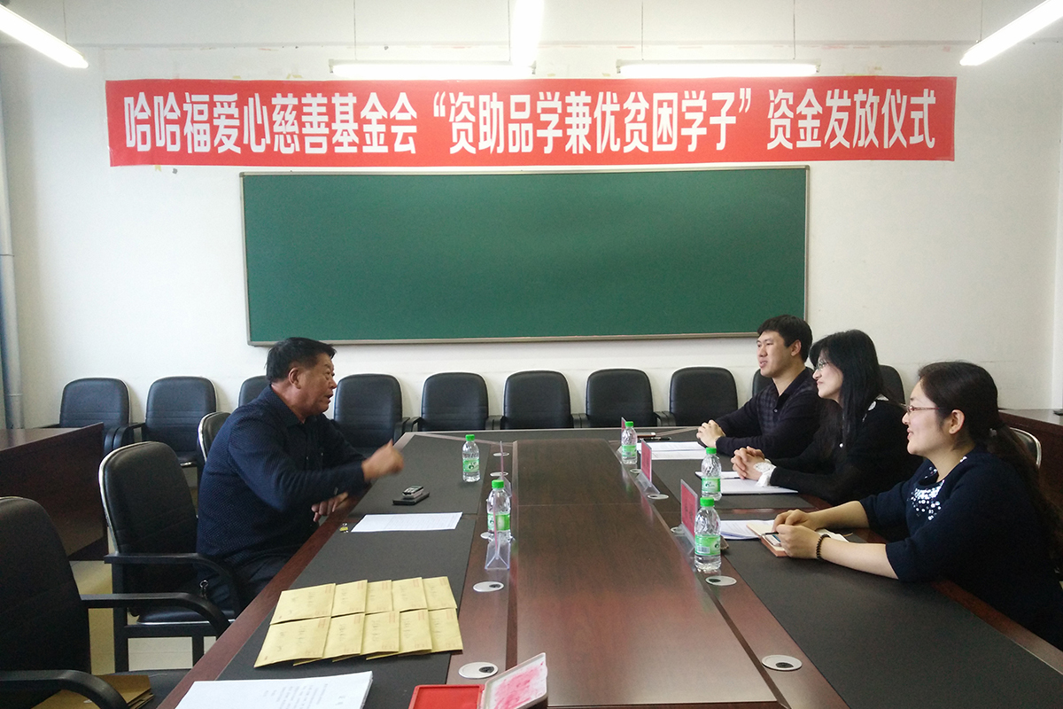 1月3日上午,黑龙江省哈哈福爱心慈善基金会在bat365计算机科学与信息技术学院417会议室举行“资助品学兼优贫困学子”爱心捐赠活动,为学院品学兼优经济困难的10名学生捐赠爱心善款共计30000元。