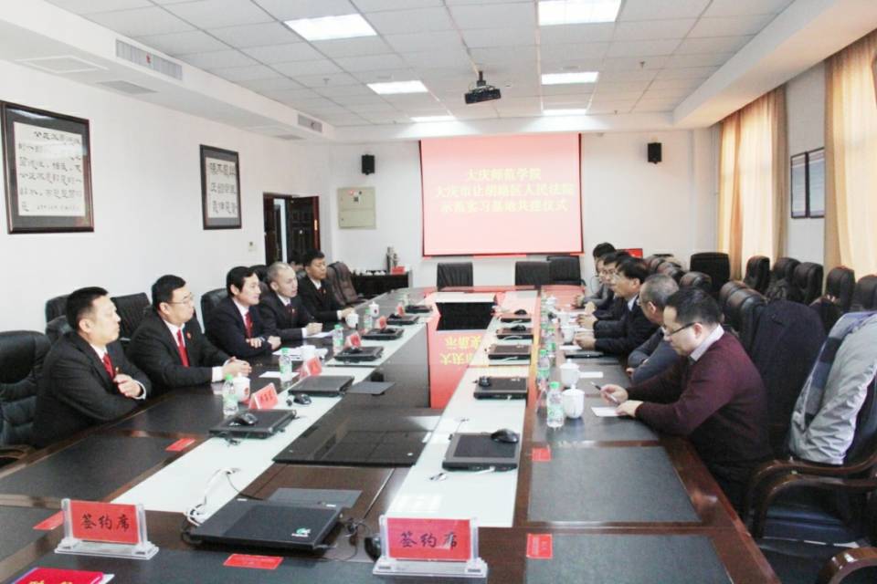 2017年12月12日9时,bat365官方官网法学院与大庆市让胡路区人民法院举行bat365官方官网教学示范实习基地共建仪式。