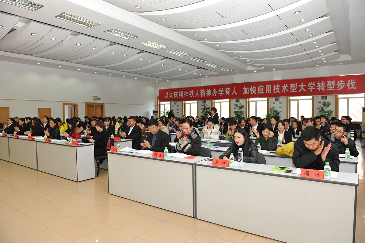bat365官方官网副校长乔志和教授、大庆市旅游局副局长高铖、bat365官方官网经济管理学院院长张平、党总支书记孔若东、bat365官方官网旅游系教师、各旅行社高层人员、导游代表三百余人参加了会议。
