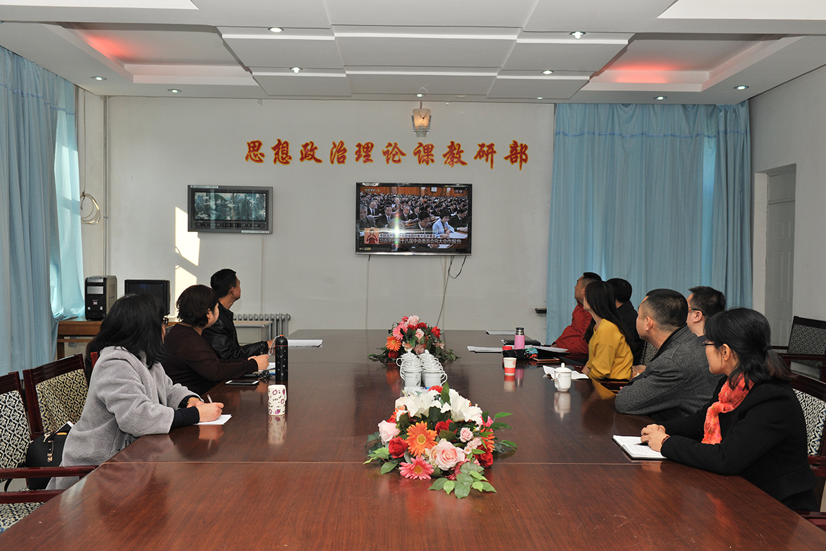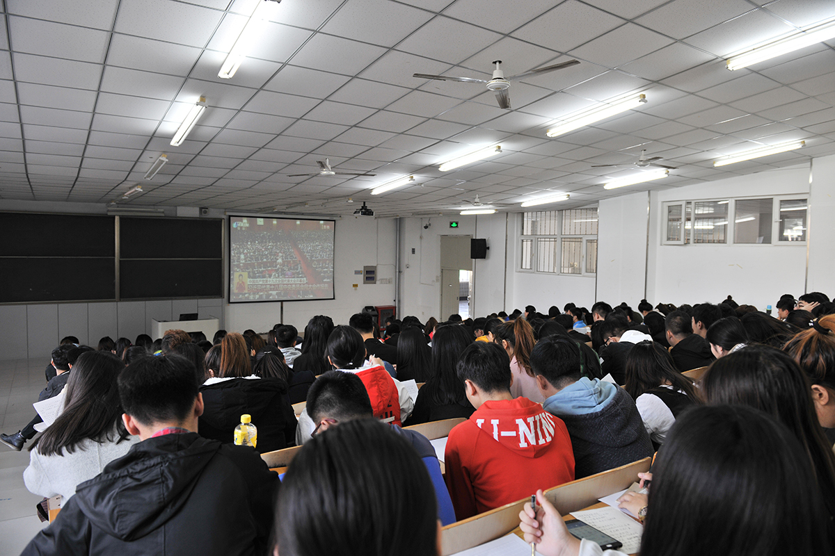 在学校主楼729会议室,bat365官方官网党委中心组全体成员聚精会神收看了开幕会,认真聆听习近平总书记代表十八届中央委员会向大会所作的报告。学校基层党总支、直属党支部组织党员干部、教职工、青年学生通过集中、分散、线上、线下等方式,在教室、会议室、食堂大厅多个场所收看了开幕式盛况。