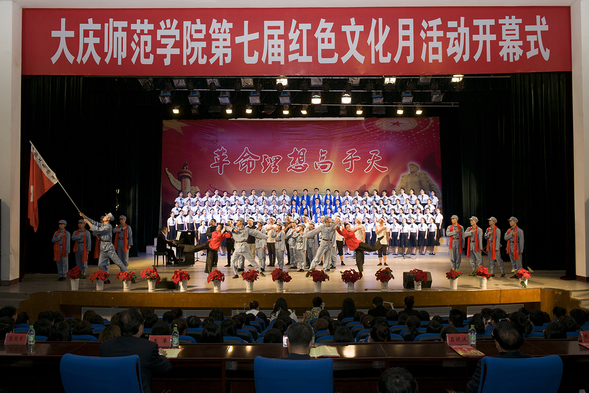 开幕式在外国语学院《四渡赤水出奇兵》、《踏着铁人脚步走》的激情演唱中拉开帷幕。教师教育学院演唱的《学铁人做铁人》、《红歌联唱》展现了身在大庆学大庆,铁人身边做铁人的决心,震撼了全场观众;法学院演唱了《铁人还在我们行列》,激起了观众对铁人的怀念之情。《当那一天来临》将解放军英姿飒爽、英勇向前的精神展现了出来;经济管理学院演唱的《革命人永远是年轻》、《你是铁人》体现出革命精神的延续,展现了青春又与变革与创新相伴;化学工程学院用团结力量展现了生命的高贵,《铁人还在我们行列》、《保卫黄河》大气磅礴,使在场的所有观众又重温了那段激情燃烧的岁月;计算机科学与信息技术学院演唱的《我们的队伍永远强》、《祖国不会忘记》唱出了石油人的心声,“在这里铁人精神我们发扬,在这里传帮带的传统不敢忘”,“祖国不会忘记,梦想仍在继续”,声声令观众动容;文学院演唱的《我为祖国献石油》、《中国军魂》气势雄壮,歌声嘹亮,表现了勇于战胜困难的革命乐观主义精神;生物工程学院演唱的《映山红》又将响彻在我们的耳畔,动人心弦的旋律扣人心弦,《石油人之歌》唱出了几代石油人的艰辛与伟大;美术与设计学院演唱的《铁人队伍永向前》、《当那一天来临》感染了在场的每一位观众,尤其是退伍学生现场的激情表演,赢得了全场观众雷鸣般的掌声;体育学院演唱了《踏着铁人脚步走》、《强军战歌》,气势恢宏,歌声豪迈,用嘹亮的歌喉将整场汇演推向了高潮,赢得了观众的一阵阵掌声;机电工程学院激情演唱了《红军不怕远征难》、《勘探队员之歌》,将现场观众又带到了那段难忘的岁月;音乐与舞蹈学院演唱的《在太行山上》、《忆秦娥娄山关》、《踏着铁人脚步走》展现出了专业水平,也再次把演出推向了高潮,为开幕式划上了圆满的句号。