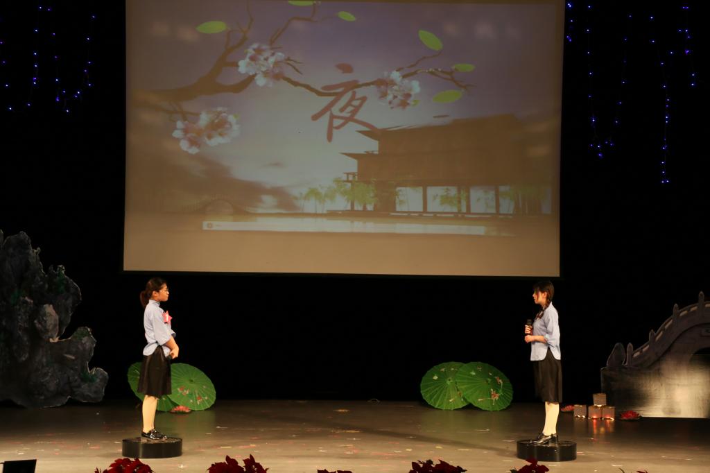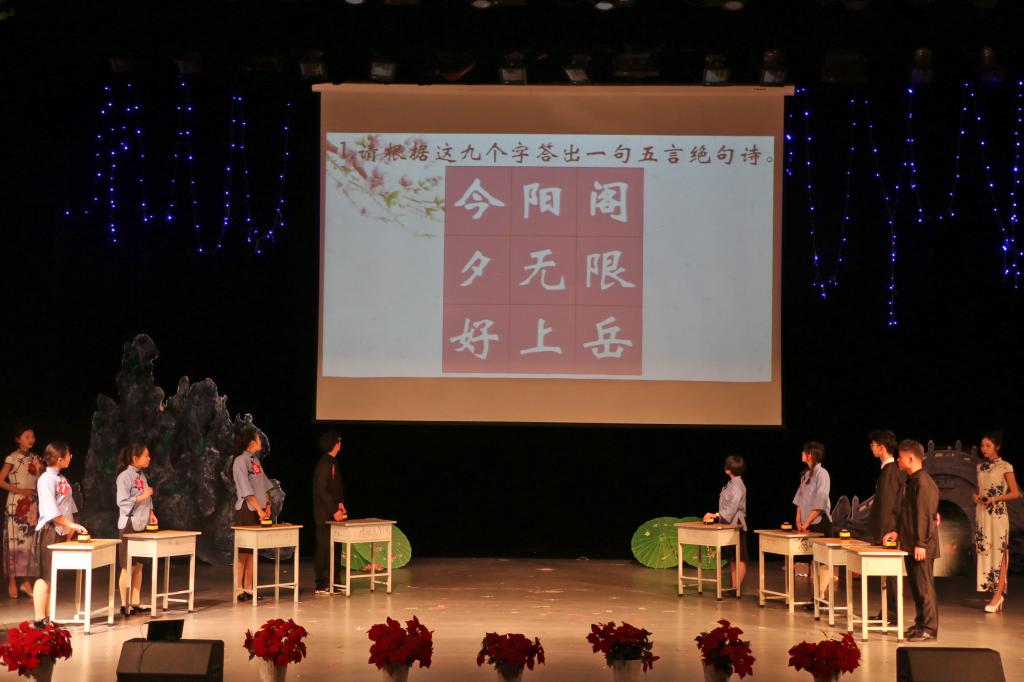 本次大赛由文学院汉语国际教育系主任任金凤副教授和汉语言文学系高政锐副教授担任嘉宾和顾问。决赛共分为句句惊心、分秒必争、大浪淘沙、飞花令与龙争虎斗五个环节。第一环节“句句惊心”,依据诗词上下句填空,题目均出自经典诗词,沉思翰藻、沈博绝丽,各位选手对答如流,充分展现了其深厚的文学素养和镇定自若的心理素质;在最具挑战性的“分秒必争”环节,选手们需在一分钟内快速回答诗词是非题,面对设计精巧、蕴含丰富的古诗词题目,他们应对自如、出口成章、诗词为剑,舌战群儒,为我们奉上一场精彩绝伦的诗词盛宴;形式多样、“满园春色”是第三环节“大浪淘沙”的一大特点,此环节除诗词问答之外,更有沙画辨诗等新颖题型,在充满趣味的文学常识测试中,考察了选手的知识储备水平和临场应变能力。经过前几轮角逐产生的四位擂主两两对决,通过“飞花令”一较高下,背诵含有关键字“风”和“夜”的诗句,选手们以诗行令,快意吟风雅,一言万意,出口见真章。真可谓“胸藏文墨怀若谷,腹有诗书气自华”。胜出的两位选手进入最后的龙争虎斗环节,面对必答题与抢答题,选手们权衡利弊,个个以文抒情,斗智斗勇,出口成章,不仅丰富的诗词储备量令观众叹为观止,其沉着应答,情感充沛的表现力更是迎来观众的阵阵掌声。比赛现场,选手们沉着应答,满腹诗书,豪情在怀,穿越古今,带领观众感受了大好河山之美、游子思乡之情、亲人怀远之愁、壮士悲国之痛;领略了中华诗词文化的奇辞奥旨与博大精深。