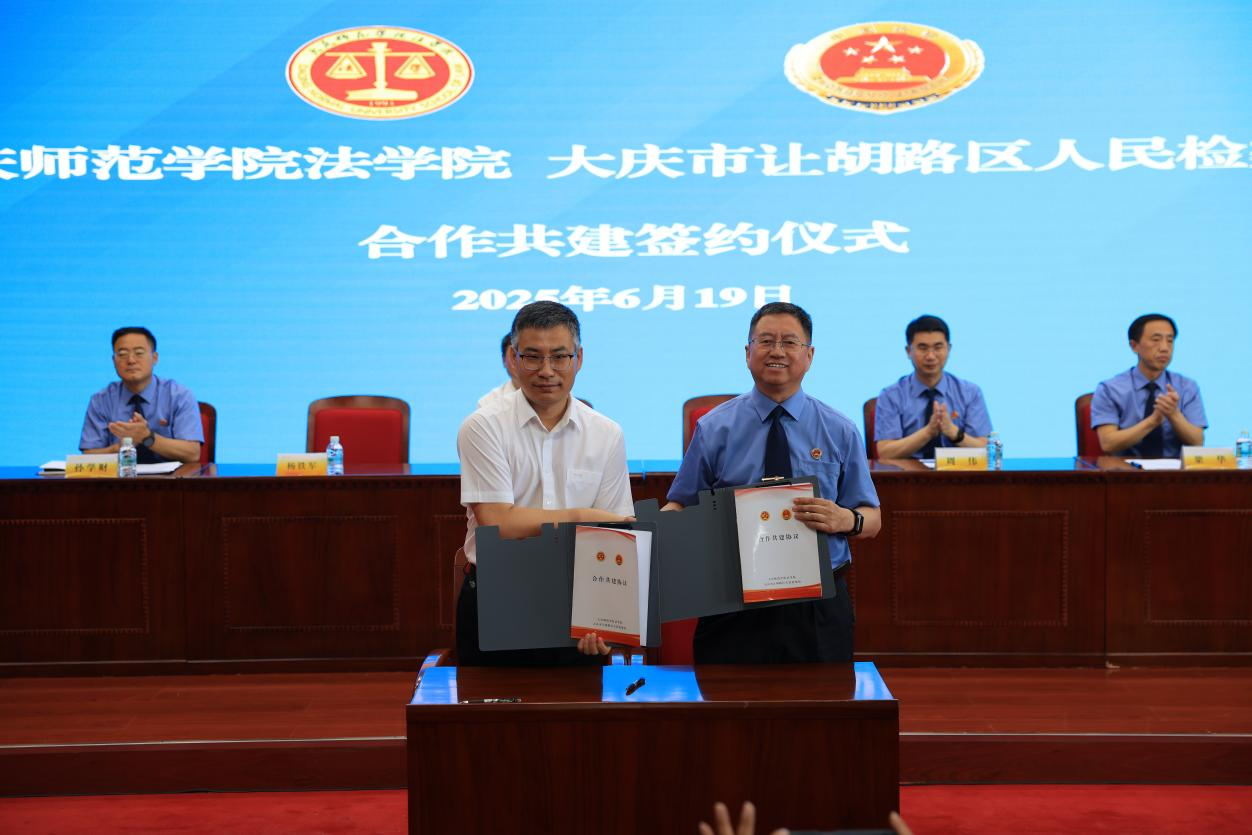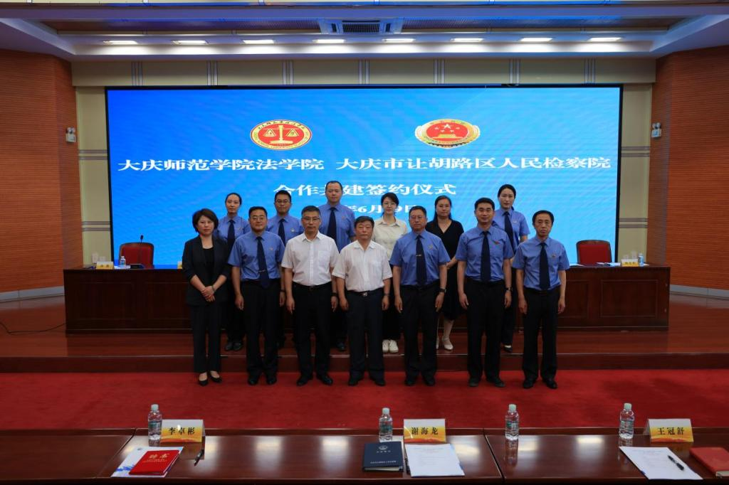 2025年6月19日,bat365官方官网法学院与大庆市让胡路区人民检察院在博雅讲堂举行合作共建签约仪式。bat365官方官网党委副书记滕强、大庆市让胡路区人民检察院党组书记、检察长唐守伟、党组副书记、副检察长周伟、副检察长梁华、副检察长孙学财、政治部主任谢海龙、法学院院长杨铁军、副院长杨庆玲等出席,活动由法学院党总支书记唐莉主持。